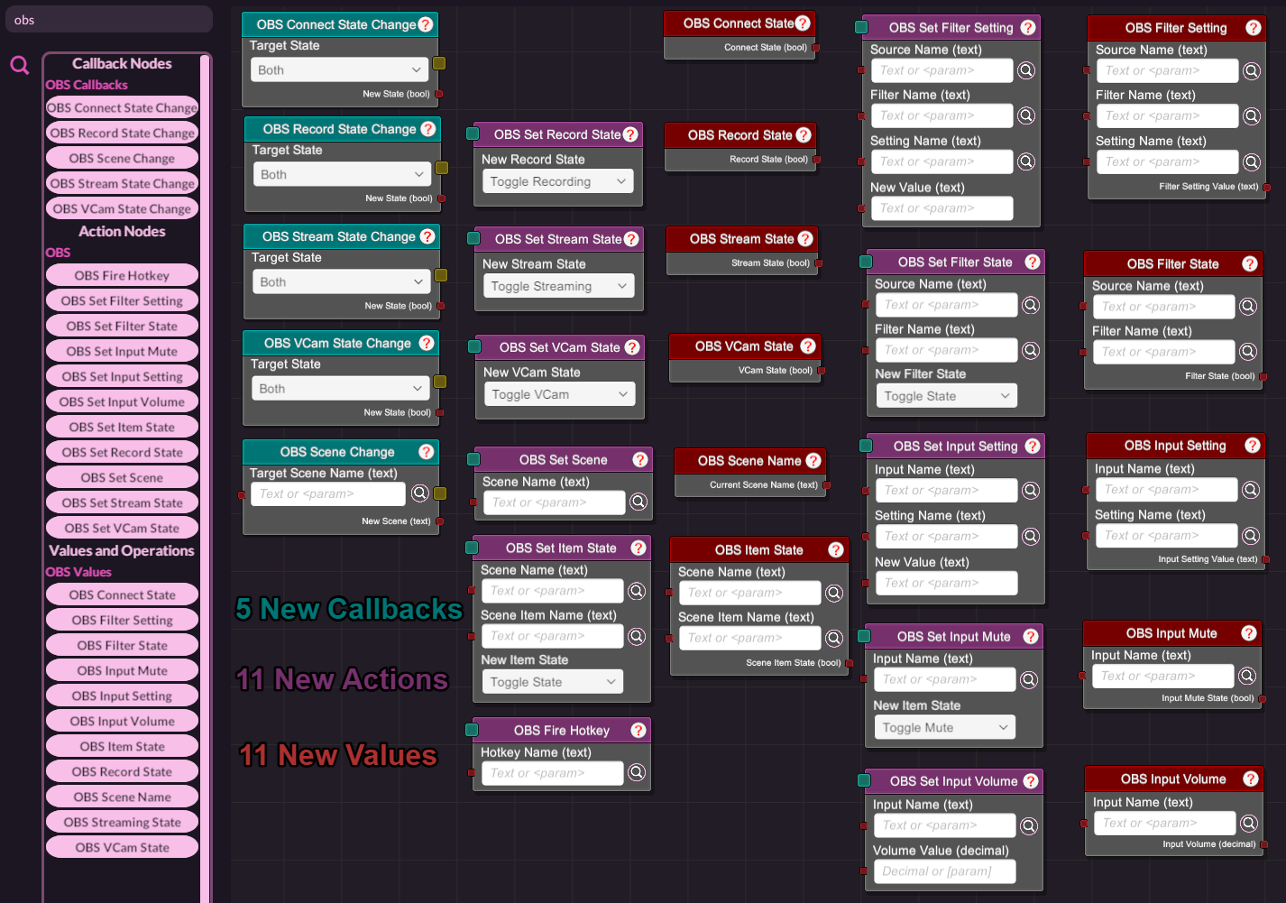 Here are the 27 new nodes for the VNyan node graph that cover all of the existing functionality: